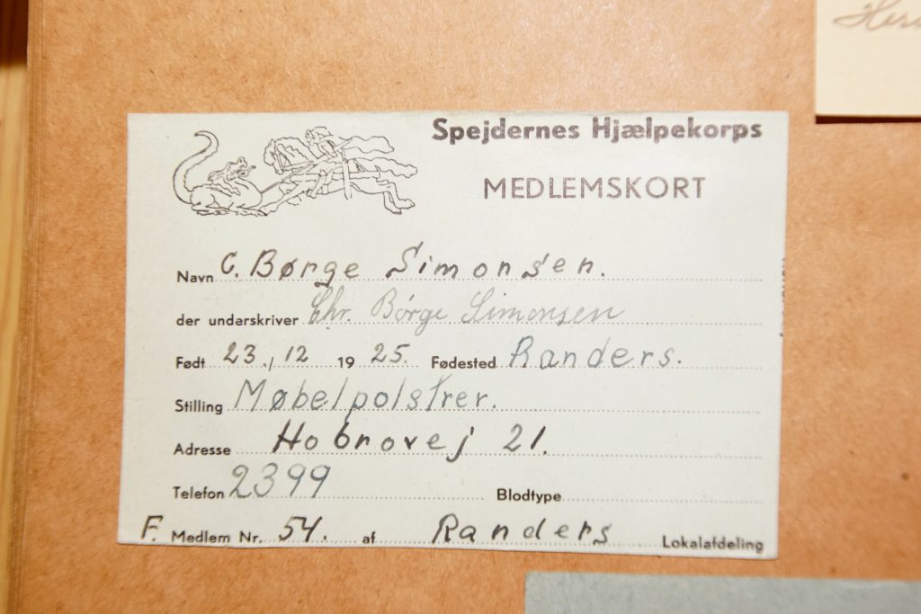 Det 90 år gamle medlemskort til FDF har han bevaret, og ligger i en mappe med masser af gamle minder.
