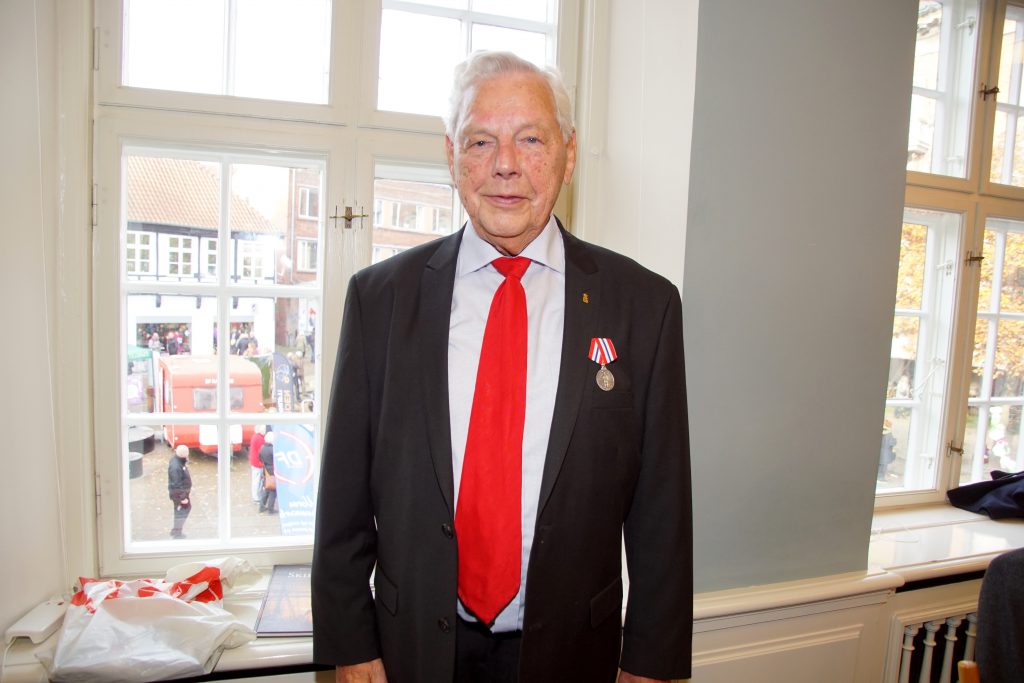 Efter 56 år fik han endelig den hæder, som han fortjener. Han blev tildelt Niels Ebbesen medaljen ved en ceremoni på det gamle rådhus i Randers.