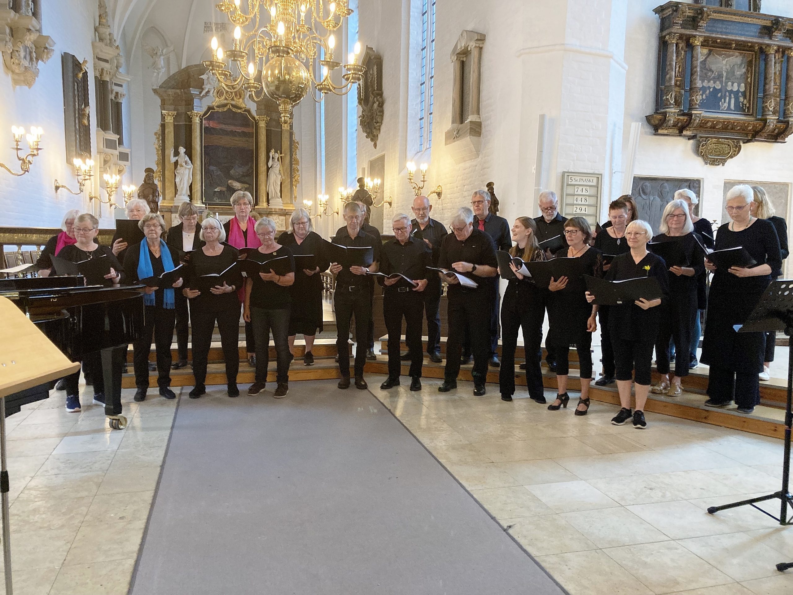 Koret er klar til at fylde kirkerummet med vellyd, og de fremmødte inviteres med på et par fællessange, så der lægges op til en stemningsfuld aften.