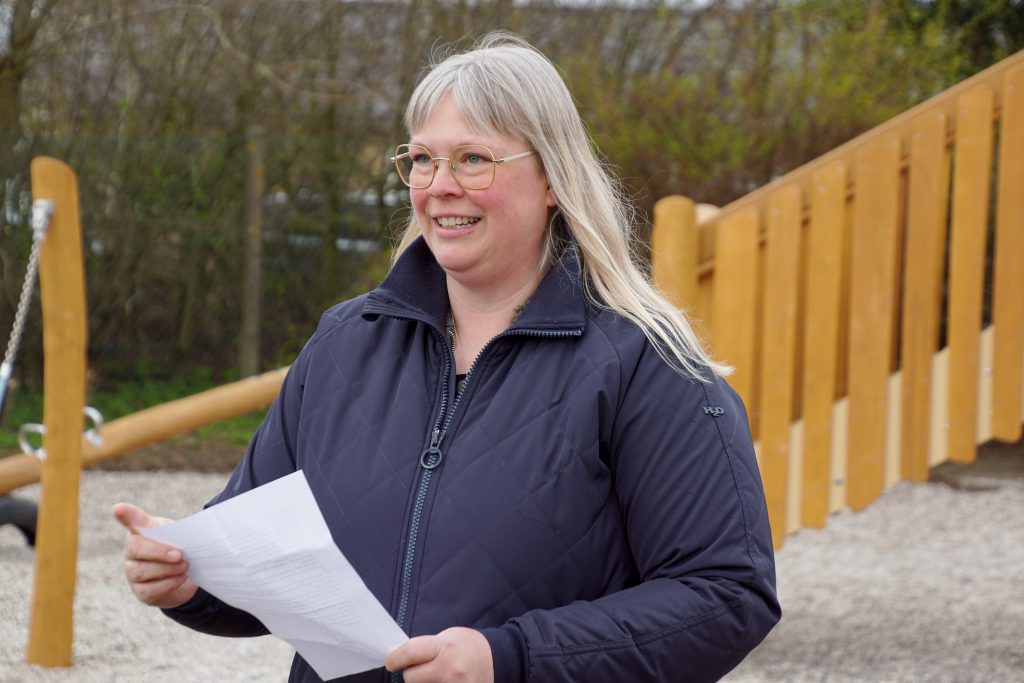Formand for legepladsudvalget Katrina Iben Agnoletti Østergaard bød velkommen til de mange gæster.